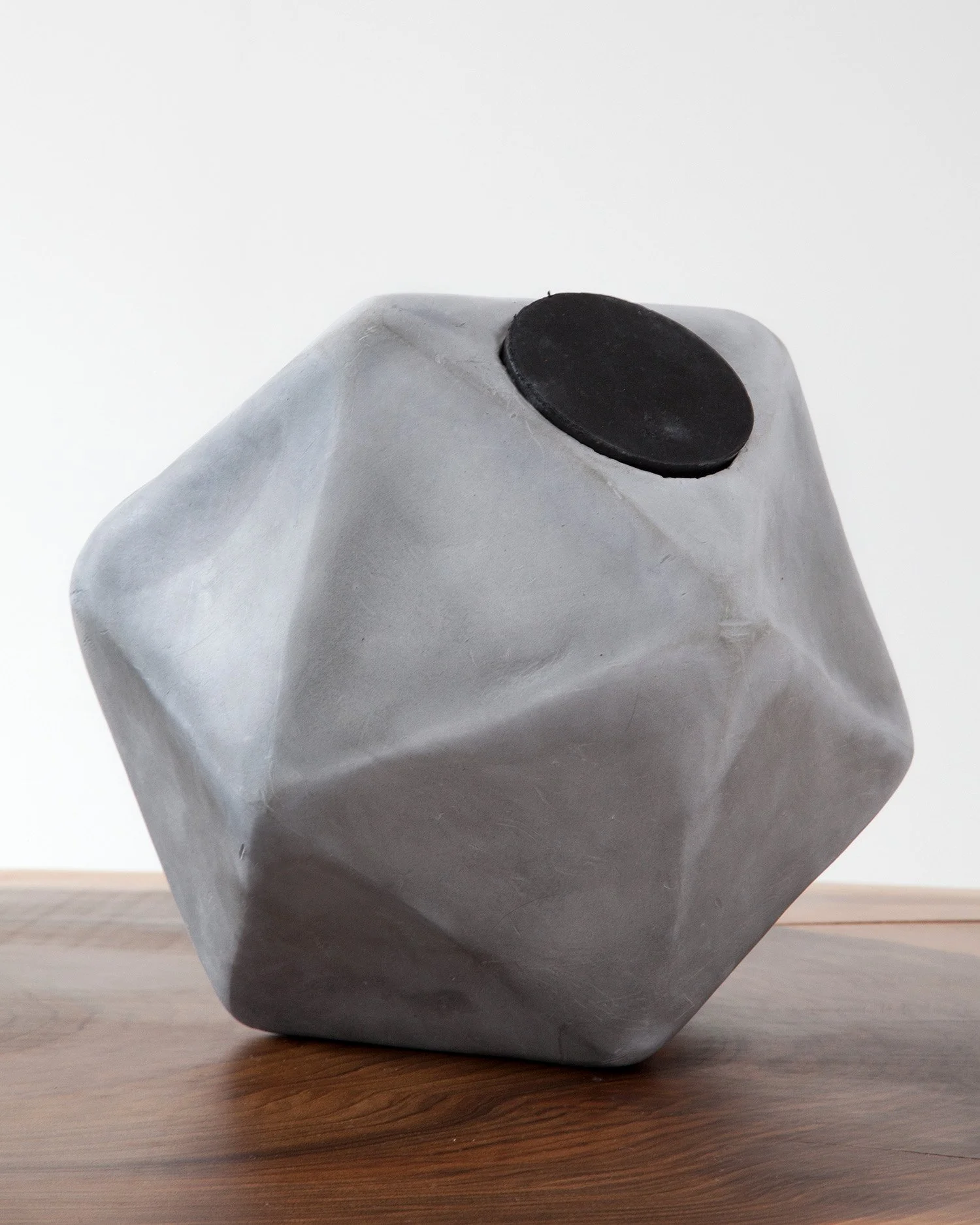 As a vase this twenty sided platonic solid offers ten different orientations to display flowers from upright to leaning sideways. Once closed with the included rubber plug, it becomes an urn.